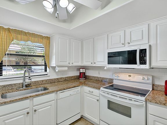 Beautifully maintained 2-bed, 2-bath ground-floor condo just minutes from Miracle Mile shops and the beach. Features laminate & tile flooring (no carpet), a kitchen with white cabinets, granite counters, and pantry, plus a peaceful screened patio overlooking a landscaped courtyard with mature oaks. Conveniently located near laundry and storage. Enjoy community amenities including pool, fitness center, pickleball, tennis, clubhouse, billiards & shuffleboard. HOA $596/mo.