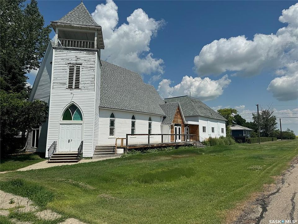 Welcome to this unique residence in the friendly community of Lang, SK. Once a church, now converted to a sprawling 3600+ square ft home, this property offers several possibilities to accommodate your living style. Boasting a grand kitchen with granite countertops and tons of counter space and cabinets, it over looks a great front room with a large gas fireplace, perfect to cozy up in the ample-size seating area. Hosting 4 beds with their own 3-piece en-suites, a large front deck, and two kitchens, this property could be the ideal bed and breakfast, used for rental space, home to multi-family units, wedding/reunion location/accommodations, or simply for that large family with a desire for a one-of-a-kind family home with plenty of charm and an abundance of character. Only a short drive to Weyburn or Regina, this property gives you the benefits of small town living with convenient access to city amenities. Call today for your viewing of this incredible property!