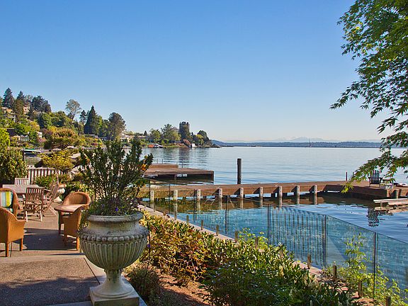 Enchanting modern waterfront on Lake Washington shores. Located in the Washington Park neighborhood, this home draws in views of the water, Cascade Mountains and Bellevue Skyline. Breathtaking scenery floods the expansive living space where walls-of-windows stretch high above. Ready to entertain: Rec room, sound system, private dock with boat lift. Enjoy a luxurious private master suite, graciously spaced. Designed by Harrison Overturf, this 1998 Ralph Anderson remodel oozes sophistication.