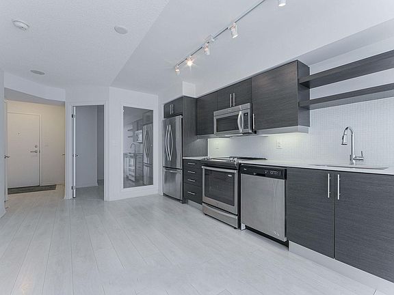 Unblocked toronto downtown viewModern kitchenUpgraded granite countertopWalkout balcony