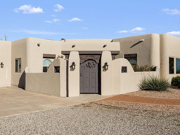 Perched on 1.47 acres with jaw-dropping views of the Sandia Mountains! Backyard has cinder block walls, most custom homes in the same area have none. New Roof, stucco, and windows! Custom front gate. Landscaped. Once inside you'll notice the seller's attention to detail. Too many features to list! Venetian plaster, Central Vac system, Speaker system (inside and out), and custom kitchen cabinets. With a strong offer the seller will buy a new name matching brand fridge. a luxurious primary suite offers a spa-inspired bath with soaking tub, walk-in shower, and double vanities, all while having private patio access. Step outside to unwind under covered patios and take in the sweeping mountain and desert views around you! Oversized 3 car garage. Endless potential with the back side of the lot!
