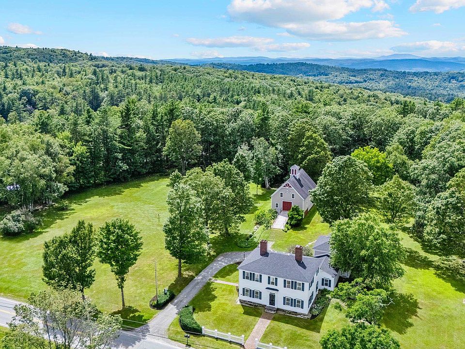 Step into a piece of New England history at The Rock Farm also known as the Hutchinson House. An extraordinary home blending the elegance of Georgian design with the balance and symmetry of Federal architectural styles. Built in 1805, this home once owned by descendants of the Delano family is listed on the National Register of Historic Places. Featuring authentic Moses Eaton Jr. stenciling, a remarkably rare and well-preserved example of early American folk art. It offers over 4,200 SF of thoughtfully updated living space, and magnificent two-story Victorian horse barn with Stick Style attributes. With its unique mix of Georgian and Federal architectural styles, the home showcases wide pine flooring, four fireplaces, original mantels, and period woodwork. This generous floor plan offers 3 bedrooms and 2 baths, a country kitchen, formal dining room, inviting central hallway, library and multiple inviting living spaces—perfect for both daily life and entertaining. Experience warm summer days from the screened-in porch or explore the rural views that surround this home’s beautifully landscaped 3.6 acres. Modern comforts blend seamlessly with history, with an attached two-car garage and heated workshop above ideal for creative pursuits or functional workspace. This property embodies classic New England charm in a peaceful rural setting, just minutes from lakes, trails, and nearby village centers. The Hutchinson House is not just a home—it’s a legacy.