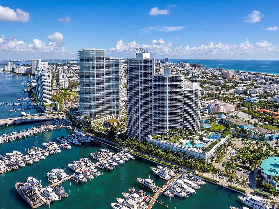Come home to a sophisticated coastal lifestyle. Escape to a luxurious SoFi retreat with stunning ocean and bay views in this waterfront 2/2.5 at Murano Grande. Flooded with natural light, this unit boasts a spacious, open floor plan. Revel in 20th floor bay and ocean vistas from 2 balconies accessible from both bedrooms and living area. Enjoy top-notch Miele and subzero kitchen appliances accompanied by a convenient laundry room. The master suite features a walk-in closet and spa-inspired Lux master bath with double sinks, soaking tub, and stone shower. Both bedrooms feature blackout window treatments and hardwood floors. Building amenities abound with a semi-private elevator, tennis court, bayfront pool, spa, restaurant, fitness center, media room, and 24/7 valet and concierge services.