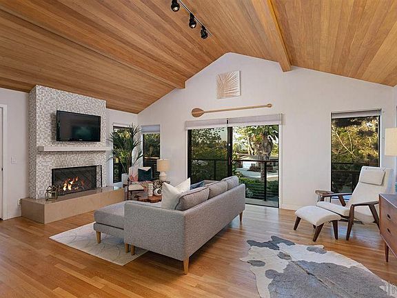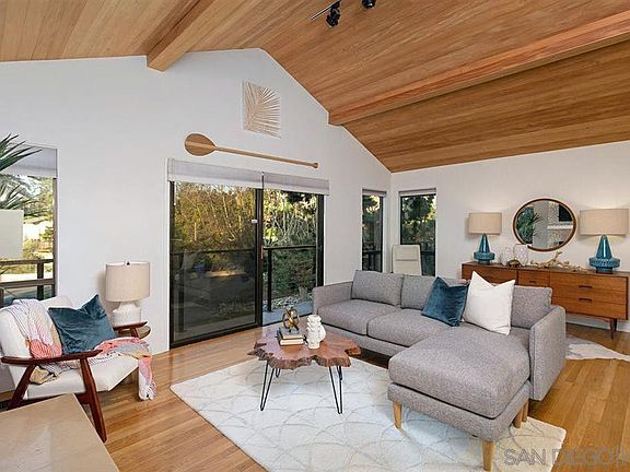 SPECIAL COASTAL SECRET SPOT! Nestled in amongst the trees in a private, tucked-away cul-de-sac in Old Leucadia, walking distance to La Costa beach, this coastal home is a FIND!! Enjoy the seabreezes throughout this GORGEOUS home loaded with sunlight and contemporary charm! Upon entry, you'll find a huge, open Great Room with soaring ceilings, hardwood floors, a wall of windows and a cozy, centerpiece fireplace. You'll feel like you're in a treehouse! The adjacent, contemporary kitchen features: Sharp, modern cabinetry Generous Dining Bar Stone countertops Stainless-steel, top-grade appliance package, including french-door fridge, Chef's range. Custom lighting. Adjacent dining area will hold large table and chairs. French door opens out to large outdoor dining/BBQ deck. The perfect flow for indoor/outdoor beach living. Master suite with private wraparound balcony, has dual closets, window seat, and ensuite bath with custom cabinetry and sink. Two spacious secondary bedrooms, and another full bath at opposite side of house. Downstairs, with its own private entrance, is a unique 1-bedroom studio flat with its own full bath and small kitchenette - perfect for separate living quarters for guests, in-laws, nanny or that adult child not quite ready to leave the nest! Also is great space for private office away from the household!! Laundry area with full-size washer/dryer on main level. Huge, private backyard area, with an expansive patio, completely re-landscaped in 2024 -- providing the perfect space for outdoor entertaining, gardening, and lounging about in the sun! Outdoor sauna on side of patio. Amazing location! Located West of the I-5 and within walking/biking distance to beaches. Will be ready for move-in beginning of May. HURRY!! CALL NOW to schedule your private tour. This home is still occupied, so showings will be limited. Will be scheduling tours for Thursday. This unique beauty won't last!! Tenants pay own utilities. Owner pays gardener.