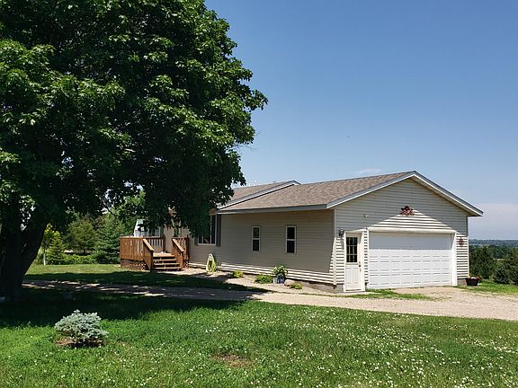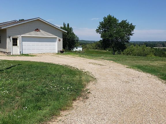 Sunrise Views down the valley to the James River from this 1.26 Acre property. This home was built and moved onto the full basement foundation in 2007. 2 bedroom, 2bath with a finished basement and kitchenette and 3/4 bath. Att. 2 car garage. Natural gas heat, New vinyl flooring, New water heater, New kitchen counter, freshly painted and ready to move in. Enjoy the sunsets on the front patio There are fruit trees on the property and a well. The house is hooked up to Rural water, Natural gas. Laundry is located by the kitchen on main floor.
