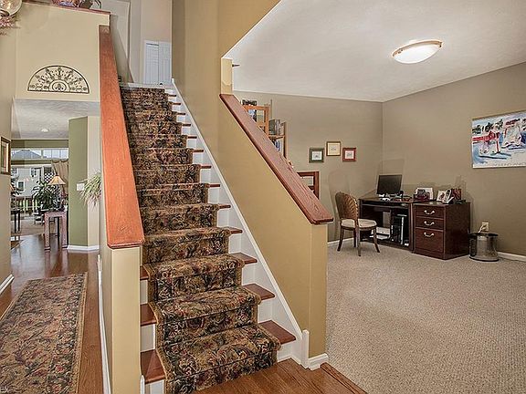 Fabulous floor plan with nice open concept flow between living, dining room which can be one huge great room. Extra large kitchen with beautiful windowed eating area has big opening to main rooms so cook can be part of the action! Library/study/office on first separated for quiet. Master suite on first has walk in closet, 2 sinks in dressing area and bathroom with large soaking tub and stall shower. Second floor has bedroom, bath and expansive loft that can be easily converted into another bedroom. Walk out lower level has large, sunny bedroom, full bath, family room and mini kitchen as well as amazing storage that includes 2 more walk in closets. Deck off living room has latticed privacy area and overlooks beautiful grounds. Hawthorn of Aurora has great amenities including club house, pool, tennis courts and playground.