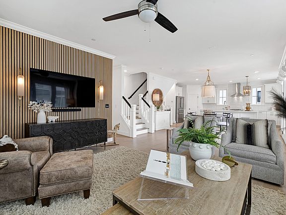 Stunning end-unit, light-filled Carson Condo where modern elegance meets everyday convenience. Professionally decorated, this 3-bedroom, 3.5-bath floor plan showcases refined upgrades, including wide-plank hardwood flooring, designer Gabby lighting, an acoustic-paneled accent wall, custom trim work, and more. The open-concept kitchen features a spectacularly sized island with seating for several, quartz counters, a gas range with vented hood, a convenient drawer-style microwave, custom cabinetry, and a generous walk-in pantry. Additional highlights include plantation shutters, custom window treatments including blackout shades, and spacious walk-in closets with thoughtfully designed custom wooden shelving. The covered front porch, Juliette balcony adjoining the dining area, and two-car garage with epoxy flooring add both charm and practicality. Low HOA dues of just $330/month. Community dog park. Located within a mile of Raleigh's Five Points, you'll also enjoy easy access to local favorites like Bright Spot Donuts and Neuse River Brewing. This is a perfect blend of style, convenience, and location. Welcome home!