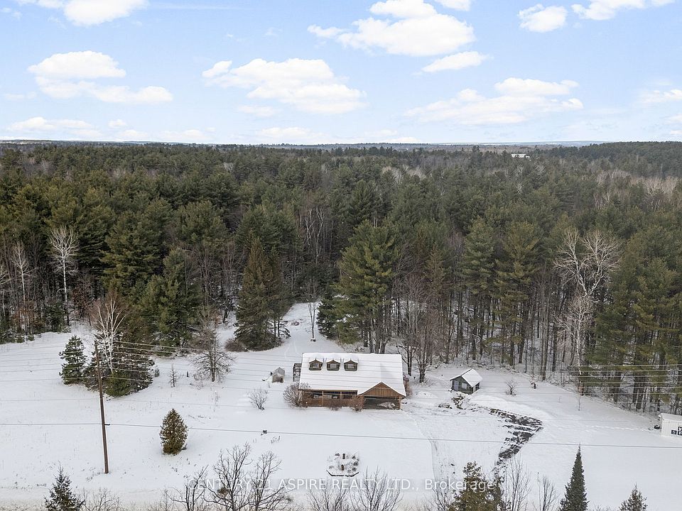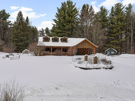 Perfect as a year-round home or weekend getaway, this charming retreat sits on 2.6 private acres in a sought-after resort area. With woods, lakes, and endless outdoor recreation nearby, you're just minutes from snowmobile and ATV trails and only 20 minutes to Calabogie Peaks Resort for skiing, snowboarding, golfing, hiking, and four-season fun. Enjoy peaceful evenings in the private backyard, ideal for relaxing by the bonfire and taking in nature. Two sheds provide convenient storage for outdoor gear and toys. Inside, the home offers a unique and functional layout featuring two bedrooms, each with its own 3-piece bathroom, and an open-concept living, dining, and kitchen area designed for easy entertaining. The living room is warmed by a cozy pellet stove that efficiently keeps the space comfortable year-round. A cute loft area adds extra charm and works perfectly as a miniature hideaway or additional storage. Located just 45 minutes from Ottawa, and 10 minutes to Arnprior, this property offers the perfect balance of tranquil, private living with easy access to city amenities, work commutes, and shopping. A rare opportunity to enjoy nature, recreation, and comfort all in one.