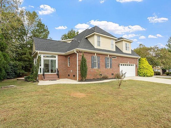 Welcome to 400 Charleston, a 3000+SF custom brick home in the vibrant Riverwood Athletic Club Community! Beautiful corner lot with private backyard /patio. 4 bedrooms /3 full baths. Luxurious primary suite on the main /lower level with double-tray ceiling, walk-in closet, and expansive bath featuring dual vanity, jetted tub, and separate shower. One secondary bedroom on main floor, and two on upper level. Kitchen has SS appliances, pantry, and opens to breakfast area with cathedral ceiling. Living Room with gas log fireplace, two-story ceiling, built-in shelves. Large formal dining room with hardwoods. Study on main level has hardwoods, French doors for privacy, and large bay window. The four season room connects to the backyard patio which has built-in grilling station and fire pit - perfect for entertaining. 2-car garage. Finished bonus room on upper level. Walk-in attic storage. Proximity to Neuse River Greenway, downtown Clayton, and easy commute to Raleigh. NEW ROOF with architectural shingles, NEW PAINT, and NEW CARPET. Move-in ready! (Some images virtually staged.)