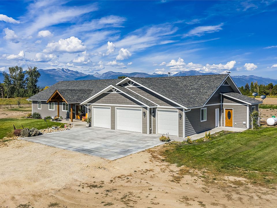 Experience luxury, comfort, and sweeping mountain vistas in this stunning newly-built one-level home on 3 fully fenced acres in the heart of Corvallis, Montana. This stunning single-level home offers nearly 2,932 square feet of beautifully designed living space, along with a separate 1,200 square foot guest quarters complete with its own kitchen, living area, bedroom, and bath. Set on three fully fenced acres with an electric gate and a brand-new irrigation system drawing from Coalpit Creek, the property combines modern convenience with Montana’s natural beauty, framed by breathtaking 360-degree views of both the Bitterroot and Sapphire Mountains. Inside, the main home features a spacious open layout with soaring 10-foot ceilings and a vaulted great room centered around a cozy wood stove fireplace.The kitchen is a showpiece with a large granite bar, smart appliances, and a walk-in pantry, opening to a dedicated dining room and a covered back patio perfect for outdoor gatherings. The primary suite offers a spa-like retreat with a tiled walk-in shower, dual granite vanities with a make-up area, and an oversized walk-in closet. The additional bedrooms and baths, a wet bar, and generous living spaces make the home as functional as it is inviting. The oversized three-car garage is equipped with heated floors and individual thermostats, supported by a highly efficient system that includes dual furnaces, AC condensers, and separate hot water sources for the main home and guest quarters. Every detail was thoughtfully designed for comfort, efficiency, and flexibility.