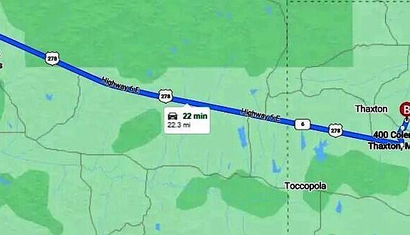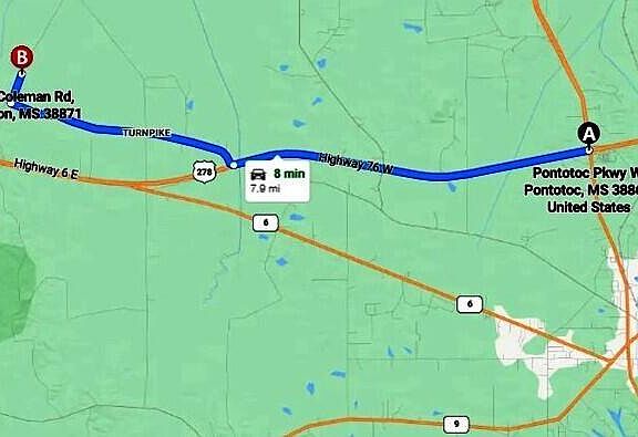 Directions from Oxford - From the intersection of Hwy 6 (278) and Hwy 7 go East on Hwy 6 (278) for 20.8 mi. then left on Bray Rd. for 9/10 Mi. take a Right on Hwy 336 for 300 ft. then left on Coleman Rd. to the land on the Right.