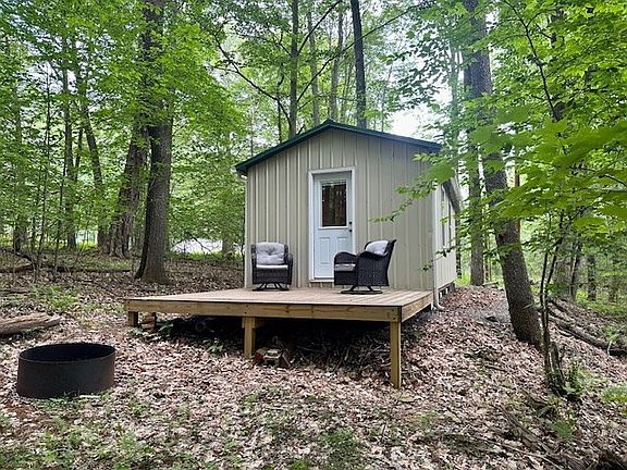 Escape to this charming cottage nestled in the woods near Cook Forest, just a short walk to the State Park and 5 minutes from hiking trails. This low-maintenance retreat features composite decking, electric baseboard heat, and partially furnished living spaces. Enjoy the simplicity of a portable self-pumping sink (bring your own water) and a composting toilet. Perfect for nature lovers seeking a peaceful and affordable getaway. Located at end of private lane.