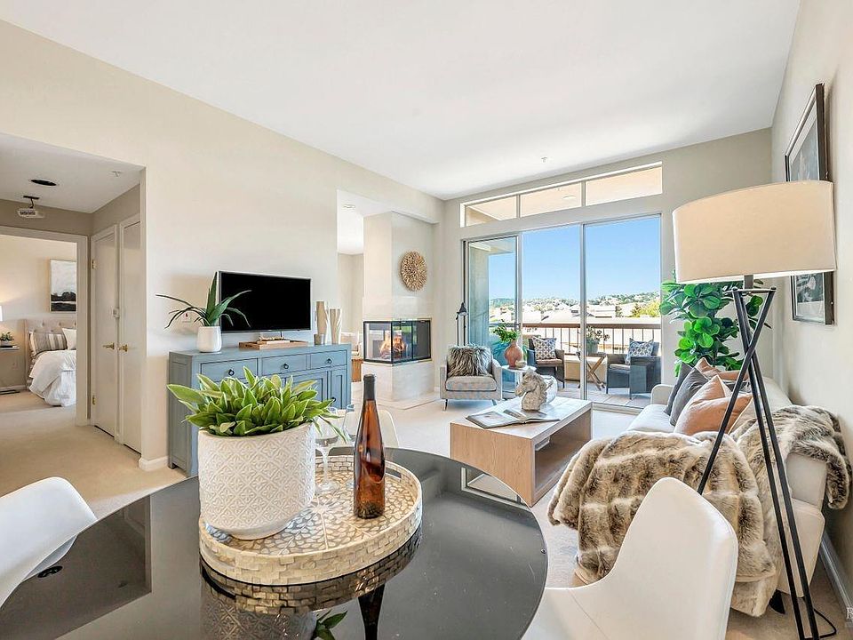 Live Well at Smith Ranch Homes! Marin's gated 55+ senior living community sits on 30 beautifully landscaped acres offering resort style independent living. This exceptional sunny 1 Bedroom plus Den is located on the top floor with no one above- offering 10'' ceilings and an extra layer of windows to let the light stream in. A double sided marble gas fireplace between the living room and den gives a warm ambience to nearly every room. The primary bedroom's walk-in closet is one of the largest of all floor plans and truly a favorite among residents. A full size kitchen with SS appliances, granite countertops, stacked W/D and ample storage (patio & storage cage) allows a place for everything. Enjoy a cocktail or meal on the patio or head over to the clubhouse- which from this building is most easily accessible via covered underground walkway from the parking garage. Feel safe and pampered with a 24 hour Security Call System, Weekly Housekeeping, 5 Star Dining & Bar, Wellness & Fitness Centers, Pool, Hot Tub, Valet Services, Hair Salon, Boutique, Garden Boxes, Putting Green, Bocce, Library, and a monthly calendar full of events to choose from. Pet friendly too! HOA Dues: $2827 + meals ($997)= $3824 for 1 person. Come take a tour and see for yourself!