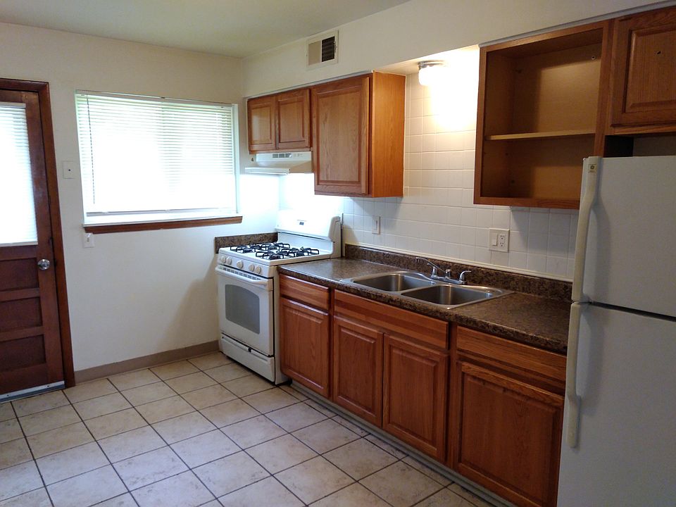 Beautiful hardwood floors with ceramic tile in kitchen & bathroom, no carpet.