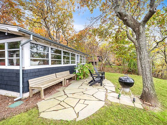 Mid-century vibesPatio with bbqWater viewsCozy homeDining nookPath to the sound