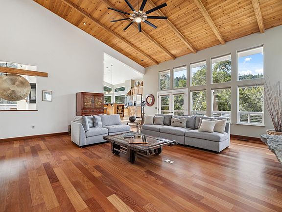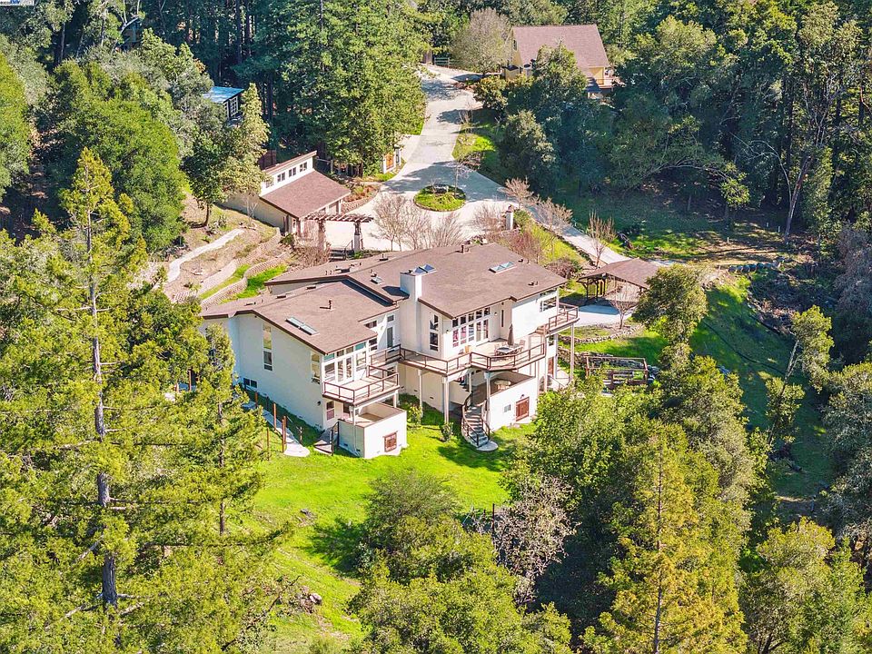 Welcome to your private estate—a rare opportunity to enjoy luxury, space, and flexibility on over 10 acres of lush, serene grounds. Designed for multigenerational living, this exceptional property features a spacious 7-bedroom, 6-bath main residence plus a separate ADU, offering privacy and comfort for family, guests, or caretakers. Inside, soaring 16-foot ceilings and expansive windows flood the home with natural light and frame panoramic views. The gourmet kitchen, with breakfast bar and generous counters, flows seamlessly into a formal dining room—ideal for elegant entertaining or casual gatherings. Outdoors, a sprawling deck invites al fresco dining and sunset lounging, while winding pathways lead through landscaped grounds with mature Japanese Maples, blooming crepe myrtle, and fruit trees, forming a peaceful botanical retreat. A designer 3-car garage with custom oak cabinetry, mirrored storage, and a private bath provides the perfect showroom, workshop, or studio. Nestled off scenic Bear Creek Road, this gated estate combines seclusion with convenience to downtown Boulder Creek and Silicon Valley’s tech hubs. Whether you seek a luxury family retreat, multigenerational haven, or private sanctuary to entertain and unwind, this extraordinary compound delivers it all.