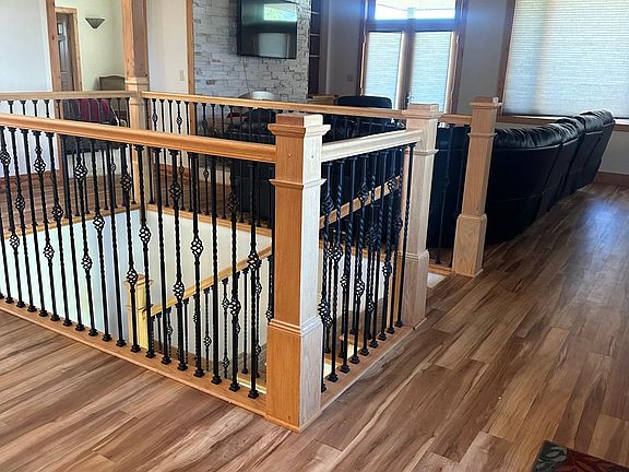 Surrounding prairie acreageOpen floor planLarge closetsWrap around deckVaulted ceilings