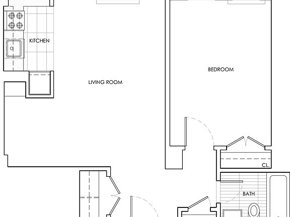 Bright exposureStone tile bathDining alcoveAmple closet spaceOpen kitchenHigh-floor one bedroom