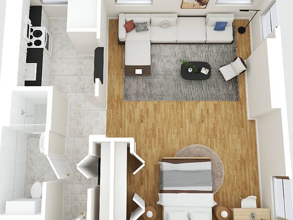 Tiled bathroomHigh ceilingsRenovated kitchenBeautiful wood floor