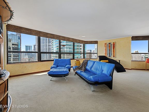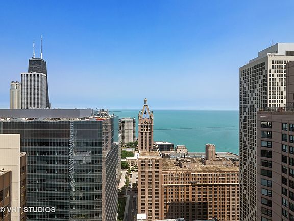 Rarely available, this high-floor two bedroom, two bath 1650+ square foot corner residence boasts three exposures--north, west and south--and stunning views of the lake, river and skyline. The spacious foyer with wood floors and generous storage leads to the expansive, light-filled living room/dining room, perfect for entertaining. The kitchen has wood floors, a walk-in pantry and a breakfast nook overlooking the city, a great spot to enjoy morning coffee. The large, ensuite master bedroom has impressive views, as does the guest bedroom. Building amenities are notable with a huge sun deck and fire pit, barbecue grills, fitness center, and indoor pool/spa. This pet-friendly building is across the street from a dog park. One parking space and storage are included in the price. Incomparable location in the heart of Streeterville steps from Michigan Avenue shopping, Lake Michigan and Ohio Street Beach, the River Walk, restaurants, entertainment and easy access to Lake Shore Drive.