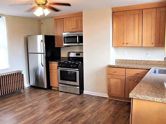 Beautify updated home! The brand new kitchen offers tons of counterpace and stainless steel appliances. The stunning fireplace will keep you warm in the living room. New flooring throughout, newer roof and new furnace. The back porch overlooks the back yard and has a wonderful view. Parking available in the front of the home and also extra parking in the rear. Great location and is on bus line.