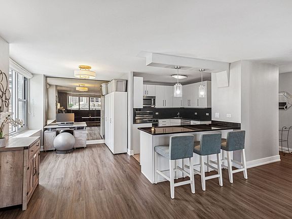 Step into this gorgeous corner unit located in Chicago's famous 400 E Randolph St. Unit 930. This 2 bed, 2 bath spacious condo offers sweeping views of the city's beautiful skyline. Entire condo has been freshly painted and newly installed Lifeproof Vinyl Plank (sustainable) flooring throughout. Kitchen has been remodeled with opening the space to the family room while adding a large, eat-in breakfast bar with built-in wine fridge. Other features include Corian countertops, brand new Bosch dishwasher, matching stove and microwave, custom fitted Subzero fridge/freezer and updated white cabinets that open up to the expansive dining. Currently the space is being used as an office area. The spacious primary suite is certain to wow with oversized closets. En suite bath boasts a new vanity/sink.The second bedroom is perfectly positioned within the condo and can accommodate a queen-size bed. Be sure to step out onto your oversized balcony so you can enjoy the serene, yet spectacular views of the city. Over-sized closets of plenty and storage are all finished with Custom Closets or Elfa designed. Building offers incredible luxury amenities that include the "400 East Fitness & Spa"-racquetball, basketball, ping-pong, year-round sunny indoor pool -sun deck, party room, business center, library, children's playroom, cardio equipment, machine weights, free weights, massage therapist (by appt.), steam room, sauna and whirlpool, bike rooms and package delivery service. Parking is $220 per month and 30 min free guest parking. Additionally, walk to Millennium, Grant and Daley Park, Michigan Ave. and State Street shopping and entertainment. Easy access to Chicago's Lakefront, Navy Pier, and bike/running paths. All you have to do is move-in and unpack. Welcome home!