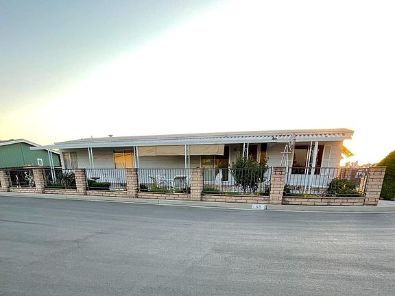 Beautifully well-maintained spacious home in a quiet gated 55+ community mobile home park. This home sets on a corner lot and features vaulted ceiling with faux beams to bring together this spacious open setting for the formal living room and formal dining room with built in hutch, two bedrooms, 2 full baths, separate garden tub and shower in master suite, spacious kitchen with and breakfast bar overlooking spacious family room, indoor laundry, new flooring and ceiling fans with remotes throughout, gated two-car carport, storage unit, covered patio area to enjoy those relaxing sunny days. This community provides a beautiful spacious clubhouse for lots of entertainment and a swimming pool to relax on those hot sizzling summer days. A well-maintained big park with lots of shaded trees to enjoy watching your pets run and play. This home will go fast in this highly sought after community. A must see!!