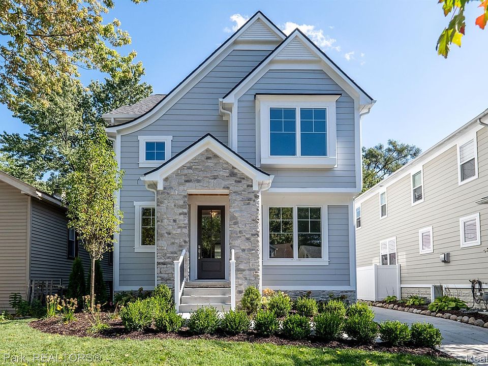 Stunning new construction by Ideal Builders & Remodeling to be completed October 2023. Just steps to the action of downtown Royal Oak. Sprawling open floor plan spreading 2,850 square feet of impeccable living space. This dream home features a light-filled great room opening up to an entertainer's dream of a kitchen with giant island, white cabinets, walk-in butler's pantry, and quartz countertops. Sophisticated study with designer wainscoting, and french glass doors opening into the wide foyer. Primary suite boasts elevated ceilings and an expansive bathroom, featuring a spa-like shower, free-standing bathtub, dual vanities, and separate water closet. Second floor laundry room for convenience, plus custom landscaping and sprinklers. Basement with 9' ceilings prepped for a future full bathroom. The second picture displays the current status of the home.