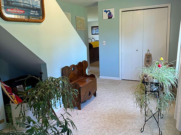 This in town, 3 bedroom, 3 bath home sits on over an acre and has beautiful views of Lake Huron and Mackinac Island. Enjoy the large, private yard that has lots of room for gardens, a fire pit for gatherings and a new deck for outdoor dining options. Inside you will find an airy, open layout with lots of lake views. Conveniently there is a full bath on the main floor along with 2 bedrooms, one with its own ensuite bathroom. Upstairs you will find a master suite with a balcony overlooking the lake where you can sit and enjoy watching the ferry boats and cruise ships as they travel to and from the island. Schedule your personal showing today so you don't miss out on this opportunity!