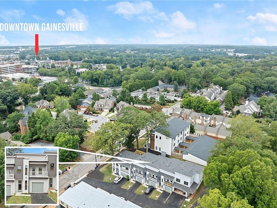 Phase 2 is nearly complete for Gainesville's newest luxury townhomes! Forrest Vue is an intimate, contemporary, craftsman-style community within walking distance of the downtown square. This under-construction interior unit features a single-car garage and a fenced backyard. The interiors showcase a crisp color palette, upscale finishes, quartz countertops, tall ceilings, true LVP flooring throughout, and upgraded appliance packages - fridge included. The main level features an open floor plan, sunny kitchen & dining, living room, and half BA. Upstairs holds the primary suite, laundry room, and two BRs, each with deck access. The third bedroom could be converted to an office or rec room with an upgraded wet bar! Exceptional in-town location just 2 walkable blocks from the ever-growing Gainesville square, full of community events, markets, restaurants, entertainment, and shopping. Completion is slated for September.
