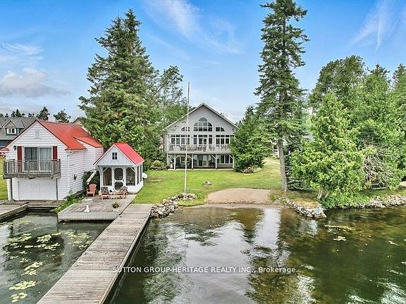 Home business opportunity situated in cottage country. This stunning lakefront home is located on Sturgeon Lake and includes 4 income producing cottages. This custom built home boasts expansive lake views from the great room which is spacious and bright. The open concept provides for a large kitchen with an island, great for entertaining and has a walk-out to your deck to enjoy peaceful evenings or an early morning coffee. Upstairs you will find a loft with your very own home office. The lower level is a walk-out looking onto the lake and is fully finished with a separate entrance. Cottages are presently rented and are approximately 720 sq. ft. each with separate meters. This property is connected to municipal water and sewers. You can walk or take a short drive to beautiful Bobcaygeon with great shopping and many restaurants. The waterfront is crystal clear for swimming and there is a a large dock for your boat or friends who come to visit by boat. Sit in the lovely sunroom at the water's edge mosquito free to wind down at the end of your day.