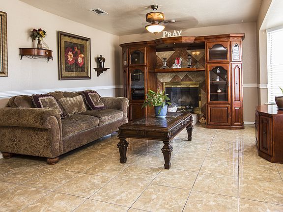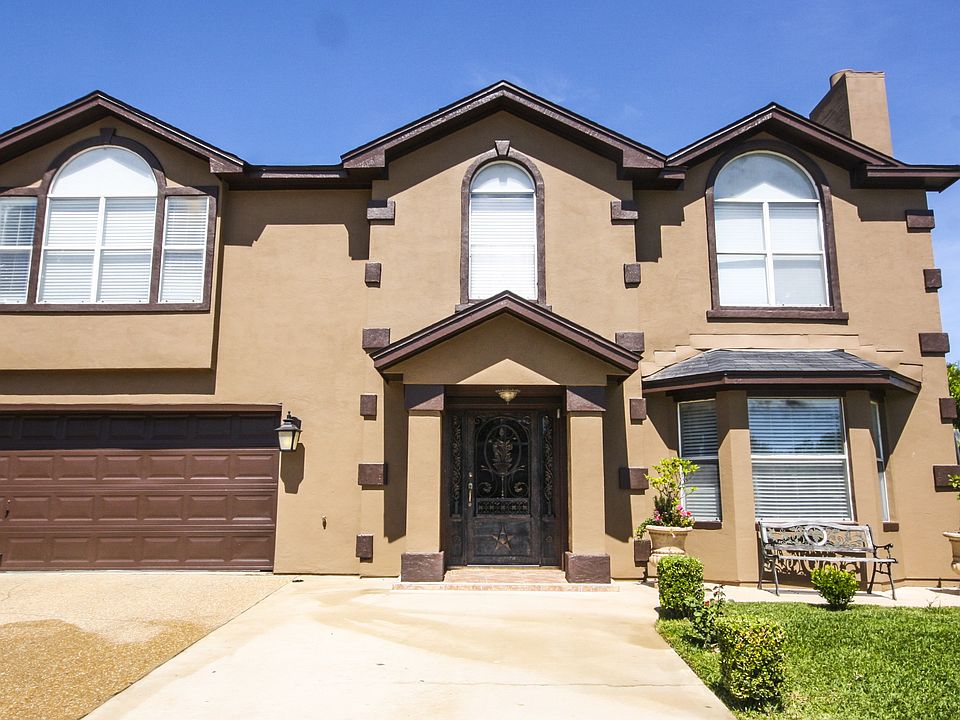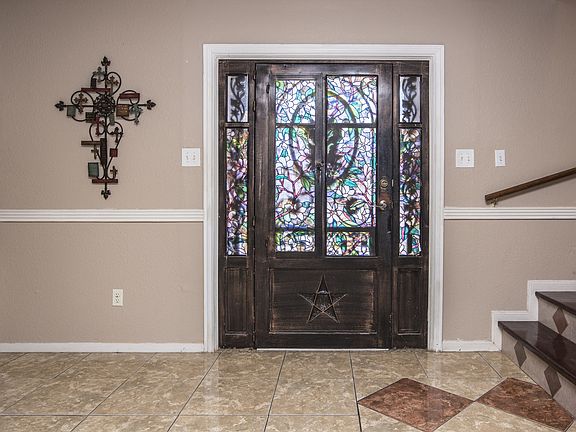 Custom built home with upgrades galore! The wrought iron entry door is embellished with stained glass once you step inside this gorgeous home. The marble flooring leads you into the sitting room, with a bay window looking out into the front yard. The kitchen features granite countertops, wooden cabinets, an island, and a walk in pantry with built in shelving. Surrounding the kitchen is a granite top breakfast bar, with viewing access to the kitchen, the formal dining room, and the living room. The living room has a built in entertainment center, with an electric fireplace, and a cutout wall that peeks into the formal dining area. The palatial master is adorned with hardwood floors, trey ceiling, and a stunning, spa inspired in suite bathroom. Each additional bedroom is located upstairs, with the carpeted third living room, and two side by side bonus rooms. The backyard features a tiled patio, an open gazebo, and a wooden overhang. The set up is perfect for outdoor get togethers! Don't let these amazing custom features get away!