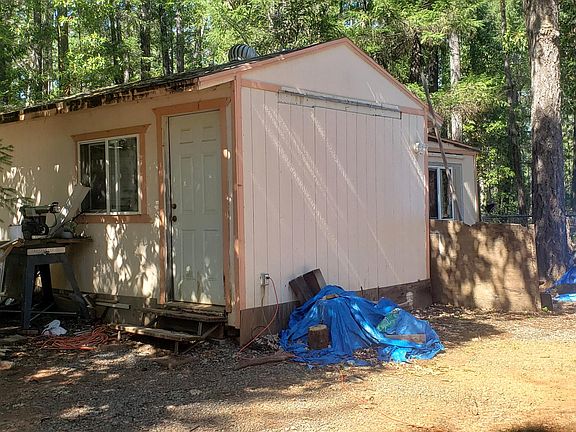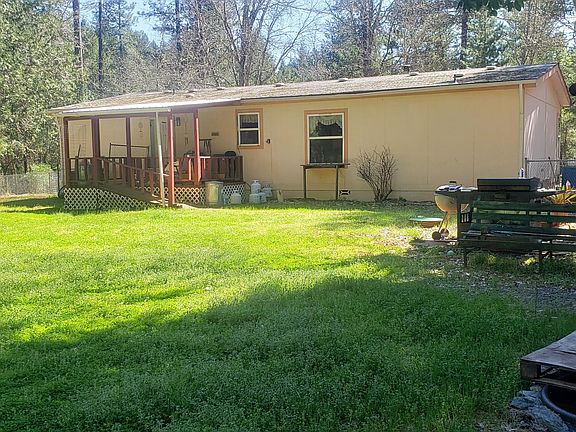 Peace & tranquility is this setting for 1997 mfg home with a very nice open floor plan. Central living with split bedroom design. Master has a large bathroom with a fiberglass walkin shower, 2 seats. Plus a big walk in closet. Kitchen and dining room combination, window over sink and a spacious pantry. There are several accessory buildings, including a double car garage, with concrete flooring. A really handy outdoor kitchen, for those who may enjoy canning and other activities. Little cabin'' needs some work. Well of record is 11 GPM when drilled. Extra holding tank for additional storage, for domestic water. wheelchair ramps in place, front and back. Big back yard, some fencing in immediate area. Improvements sit back off main road, and plus, bordered by BLM on north boundary.