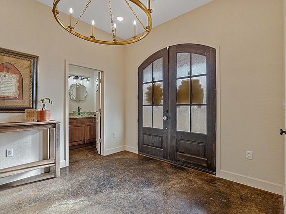Welcome to Woodland Hills Estates - a stunning custom-built home on approx. 20 acres in a country setting just outside city limits. Built in 2024, this open-layout home features 10-ft ceilings throughout, creating a bright, spacious feel. Enjoy unmatched privacy with plenty of room to roam, yet stay minutes from town. Designed with comfort and security in mind, the home includes a hidden entrance in the kitchen island that leads to a downstairs safe room with a separate gun vault and lift-assist stairs. A unique blend of modern living and country charm.