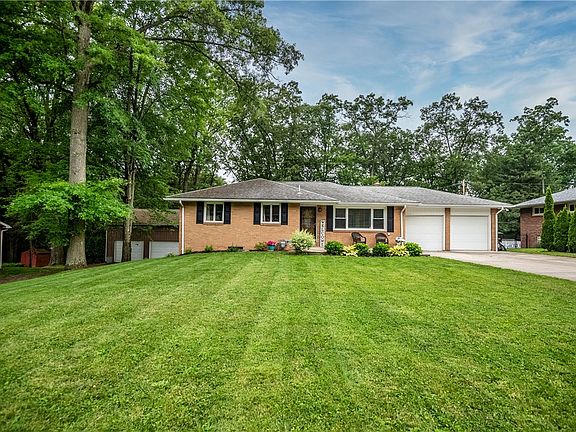 Looking for a fantastic brick ranch located on a dead end street in the heart of Hermitage? Look no further!! Pretty treelined property on a nice size lot. Many improvements have been made and you can just move right in!! Walking up to the front door you approach a large concrete patio! Entering the home, the spacious living room features recently refinished hardwood floors. Large eat in kitchen with new vinyl flooring offering plenty of storage and counter space. Updated bathroom includes new vanity and new flooring . 3 bedrooms all on the main floor. The basement is a blank space with loads of potential. Lots of storage space. Basement walks out to your backyard with a covered porch leading to a 3 car detached garage with it's own private driveway! Perfect for the car enthusiast or just someone who needs lots of storage space. Roof is estimated to be around 10-12 years old, 200 amp service, new furnace 12/2021!