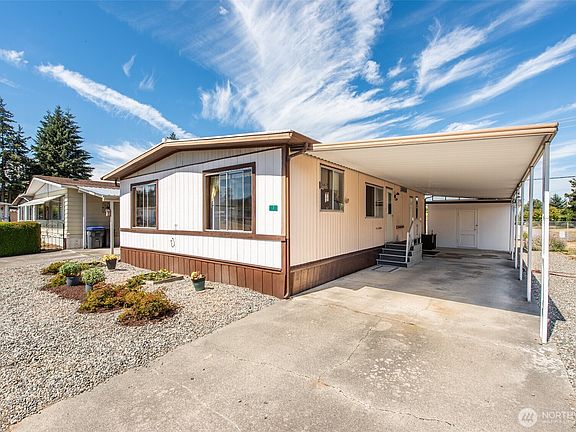 Charming 2 bedroom, 2 bath double-wide home in the peaceful 55+ community of the Green Acres Mobile Estates. Soak in the natural light streaming through the large living room windows with clear views of the Olympic Mountains. Kitchen has breakfast bar and built-ins. Covered parking with Storage shed/workshop. Close to Sunny Farms, Dungeness River, the Railroad Bridge and the Olympic Discovery Trail. Just 5 minutes from downtown Sequim for shopping, dining, and medical facilities, with easy highway access to the Olympic Peninsula's outdoor activities. Park rent covers water and sewer. Community amenities include gardening space with fruit trees and RV parking. Live the good life at Green Acres!