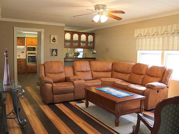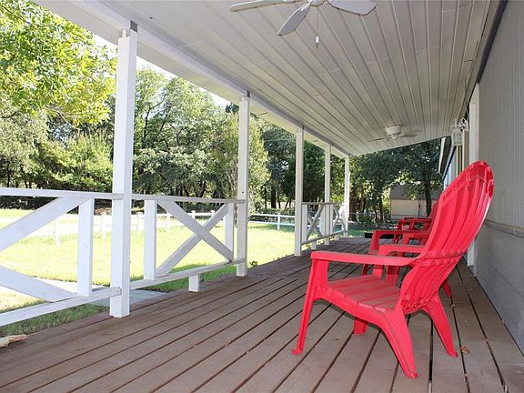 Buyers stop - Approximately $65,000 in upgrades! Charming remodeled mobile home on 1.1 acres with trees! Enjoy the country living from your Texas sized covered front porch with fans* Circle drive, fenced property* Spacious living area with vinyl plank flooring, built-in bookcase & views to front & back of property* Kitchen has stainless steel oven & microwave, new sink, faucet, cooktop with downdraft vent & pantry* Master bdrm has small office, large walk-in closet with custom storage* Master bath has 2 sinks, updated tub-shower & linen closet* Two additional bdrms and guest bath* Front fenced area with solar lights on posts* Tankless hot water heater* Storage bldg, Three-sided animal shelter*