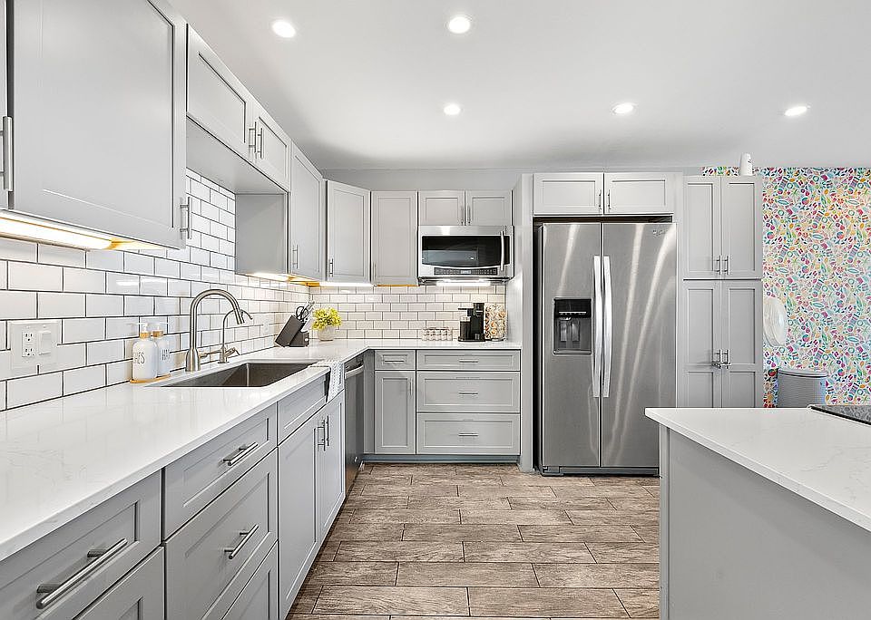 Tasteful modern updatesModern comfortStylish fixturesFresh paintSleek fully upgraded kitchenLakeside charm