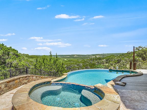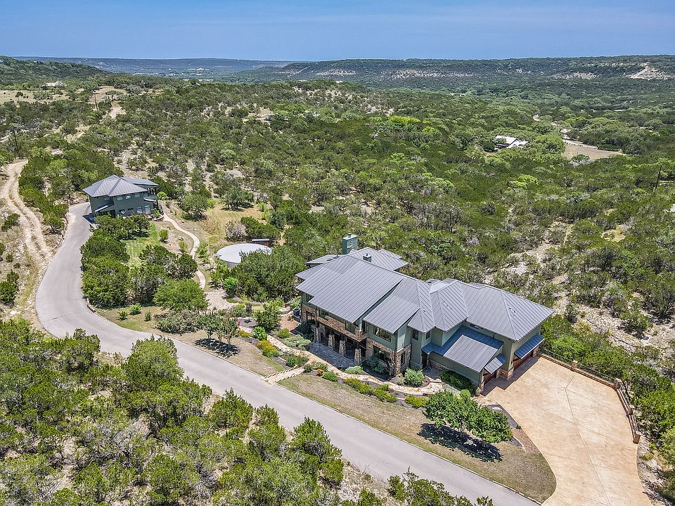 Wow Factor in Wimberley! Two exquisite homes on dramatic view acreage provides a resort-style living ideal for a Hill Country getaway or full-time residency. Mian house is 5 bedroom 4.5 baths w/ 6,197 sq ft; guest house is 4 bedrooms 3 bath in 2,180 sq ft. Enjoy family and friends just a stone's throw from the charming art and musician enclave of Wimberley. Austin, New Braunfels, & S.A. are all a convenient drive away. Recent upgrades include expansion of composite deck, exterior lighting & additional landscaping. Interior changes made to improve flow & function. Lush, natural, low-maintenance landscaping was designed to attract butterflies. Environmentally conscious rainwater collection system is oversized and easily services the entire property. Most furnishing and some artwork negotiable. Main Residence: 6,197 sq. ft. 5 Bedrooms, 4.5 Baths, 3-Car Garage, Expansive Hill Country views, Pool, Spa, Covered outdoor deck, Media Room w/Billiard area, Exercise Room, 1 Study, 1 Flex Room, Guest Apartment with Kitchenette and warm wood accents. Well appointed gourmet kitchen and elegant dining room is separated by butler's pantry. 5 bedrooms, 4.5 baths, includes a bedroom/living space that can be closed off to function as separate guest apartment accessed through the flex space, if desired or from a separate entrance. Outdoor fireplace and large-screen TV on the covered upstairs deck; bar space in main living area. Media room is adjacent to a billiard room on the lower level and provides direct access to the massive deck, bar area and sleek, natural sone-accented pool. Guest residence: 2,180 sq. ft. 4 Bedrooms, 3.5 Baths & Carport. The second home includes plenty of accommodations for guests. Kitchen, living, 2 spacious bedrooms and 1.5 baths downstairs. Two additional bedrooms & 2 full baths upstairs with 2 decks! Schedule your private tour today!