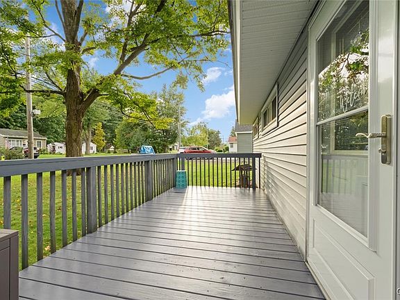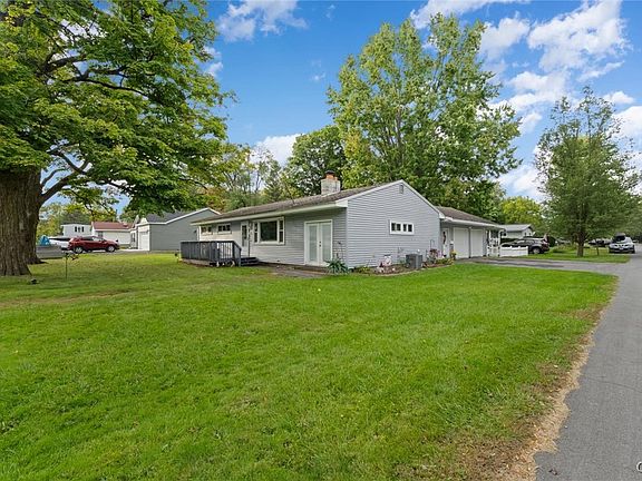 Spacious ranch located on a large corner lot with so much to offer. Living room with hardwood floors & wood burning fireplace, eat in kitchen, 3 bedrooms and updated bathroom, den, laundry & utility area and attached 2 stall garag. Outdoor living space with stamped concrete patio, large fenced yard with shed for storage, front deck/porch to enjoy. East Syracuse Minoa school district - not in a flood zone.