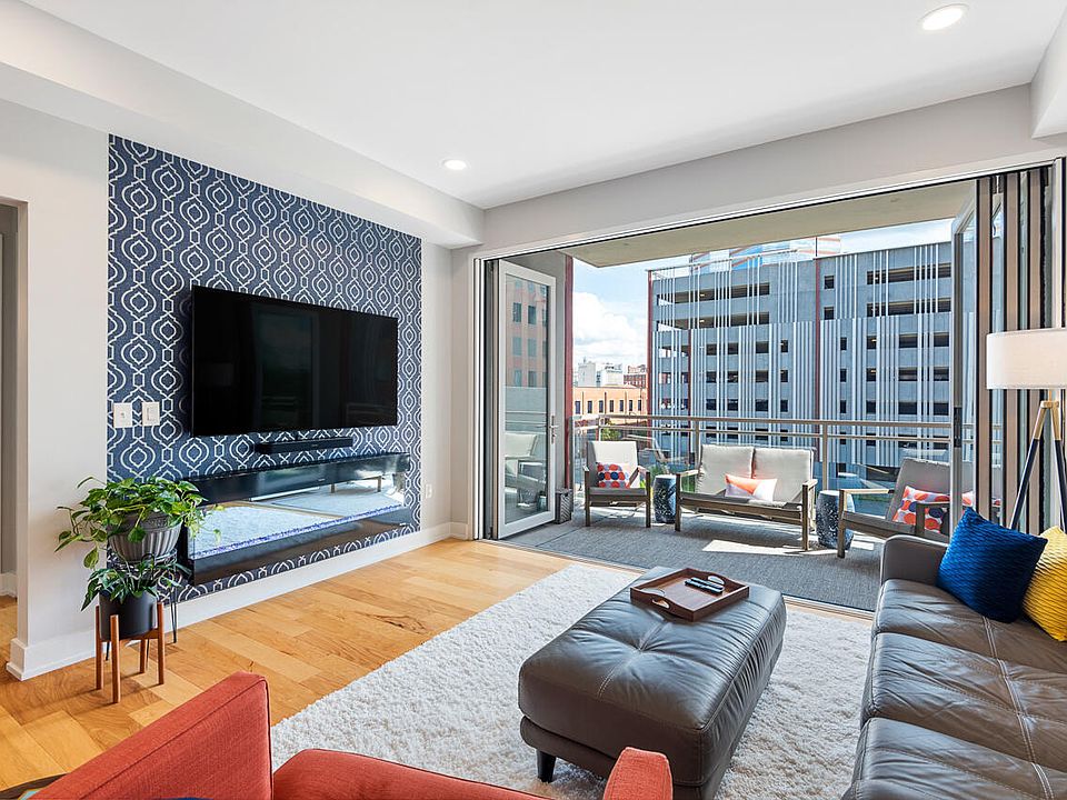 Modern. Walkable. Fuss free. This luxurious, sun filled 2BR + office, 2BA condo in the heart of Downtown Durham is perfect for on the go professionals or those ready to downsize without compromise! Steps to DPAC, the Durham Farmer's Market, Durham Bulls games, top restaurants, and more—this location is *absolutely unbeatable*. South facing floor to ceiling windows + a retractable wall of glass bring in tons of natural light (and a cool Fall breeze). Gorgeous kitchen with Bosch appliances, quartz countertops, and gas range. Large primary suite is like living in a luxury hotel! Enormous closets, separate home office, spa like baths, and thoughtfully designed open living. Enjoy fiery sunsets over the Durham skyline from your spacious covered porch. Garage parking space + storage included. Quiet, low-maintenance living in the heart one of the South's most sought after cities!