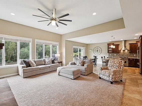 Immaculate one owner custom walk out ranch with an ENORMOUS FIVE car heated garage, an absolute gear head’s dream! The inside is just as wonderful with nearly 3300 finished square feet. First floor features open kitchen with custom cabinets, center island, gas stove, tile backsplash and walk in pantry! Oversized dinette leads to gigantic deck overlooking private backyard with tons of mature trees! Huge family room boasts floor to ceiling stone fireplace. Three spacious bedrooms including owner’s ensuite with large walk-in closet and bath with dual vanities, tile shower and jetted tub. Don’t miss the drop zone and oversized laundry room with counter space and storage cabinets. Plus, new carpet and 10 foot ceilings through out! Finished walk-out lower level features the place to entertain! Huge wet bar with refrigerator, tons of cabinets and sitting space, plus rec room, pool table area and 4th bedroom with ¾ bath. Plus tons of storage. The backyard is a relaxation oasis with stone fireplace area, fire pit and huge patio plus hot tub! Don’t miss the central vac, irrigation and tons of professional landscaping on nearly half an acre! The garage is over 1500 square feet, with epoxy floors, floor drains, and hot/cold water access. All information obtained from seller and public records.