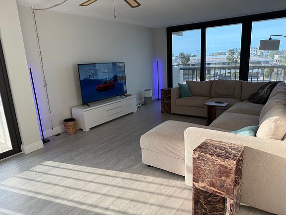 Care-free island living just a quick walk or bike ride from Clearwater Beach. Private pool, jacuzzi, sauna and fitness center are some of the amenities that await you! Corner unit with abundant sunshine and two large balconies. Water views and sunsets make this a wonderful beach retreat. Contact for rates depending on length of stay. 90 day minimum stay.