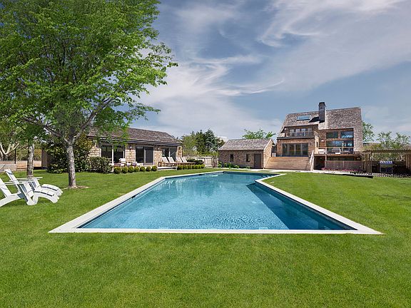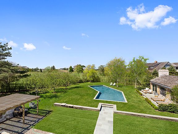 Situated on a full acre in a coveted Bridgehampton South location, this light-filled beach home is just a few lots from the ocean. The living room boasts soaring double-height ceilings and a dramatic wall of windows, showcasing sweeping views of the pristine grounds and capturing the stunning western light. The home features three bedrooms, including a primary suite with views of Mecox Bay, three full baths, a versatile loft space, and an open chef's kitchen. Expansive multi-level decking and a covered outdoor dining area create the perfect setting for entertaining and enjoying the refreshing ocean breeze.Exceptional amenities include a spacious pool house with a bathroom and outdoor shower, a 50-foot heated gunite pool, and a two-car garage. Surrounded by lush, mature landscaping that ensures total privacy, this property also offers ample room for future expansion.