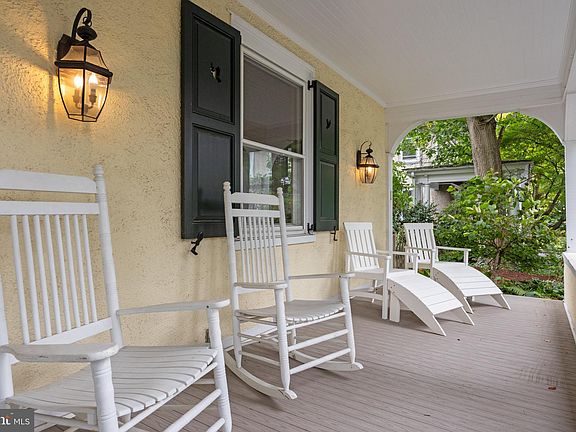 Looking for a charming slice of downtown living? This historic gem is basically your dream come true! Just a stone's throw from the shops and resturants on Main, this home is like a love letter to classic beauty. While sweet little fencing welcomes you in, there's gorgeous landscaping and an inviting front porch with replacement Timbertech decking that's just begging for morning coffee. And don't even get me started on the fenced in garden and patio with its pergola – it's basically an outdoor living room that'll make you want to host every summer gathering! The circular driveway is the cherry on top, giving you that extra touch of elegance and practicality. It's not just a house; it's a quaint retreat that feels like an escape right in the heart of downtown Moorestown! The front entry Parlor offers a cozy ambiance with original wood flooring which you'll find throughout most of this home. Split stairway allows for convenient access to the rear kitchen as well as upstairs. The Living room blends casual seating space for reading books or watching TV along with a more formal retreat where you can enjoy conversation by the gas Fireplace (with blower) from the dual pew benches. Pocket doors lead into the large Dining Room which pulls in the natural sunlight. UV film has been added to the rear windows for better enjoyment during the day. The Remodeled eat-in Kitchen features Quartz counters, replacement cabinetry with crown molding, stainless steel appliances including a gas range with hood and a dedicated walk-in pantry. Plenty of table space and a half bathroom complete this level. The 2nd floor boasts 4 Bedrooms all showcasing the original wood floors and 2 Full Baths. The first bathroom features a vanity with dual sinks, tub/shower and the washer and dryer while the second full bathroom has been updated with a custom tiled walk-in shower and pedestal sink. The 3rd floor offers 2 additional neutrally painted bedrooms with an adjoinging jack-n-jill full bathroom with a stall shower. Plenty of storage spaces throughout and serviced by radiator heat along with attic blown-in insulation, these rooms stay warm long after turning down the thermostat too. The Basement provides additional ample storage, and includes a partial french drain and sump pump which has mitigated any water intrusion concerns, radon equipment, a fully replaced sewer line to the curb, and the installation of underground downspout dry wells. There's an outdoor shed with ramps and solar powered LED light and a built-in potting shed behind the home. A 1 year HSA Home Warranty with roof leak protection has been included with the sale for complete peace of mind too!