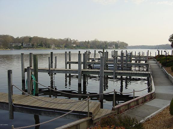 CAREFREE WATERFRONT CONDO LIVING! The attention to detail and decorating is very apparent when you walk into this condo. The 2 bedroom and 1.5 bath walkout lower level condo has 1,270 finished square feet! The master bedroom has its very own master bath with new vanity and tile surround tub/shower, its also has a separate vanity sink for ease of getting ready. The Kitchen is a show piece with new cabinets and Quartz solid surface counters, tile backsplash and stainless steel appliances. The main floor has been completely remodeled with new wood floors and paint. The condos' other features include remodeled half bath, fireplace, sliders to open patio overlooking water. Association clubhouse and pool and beach. Boat slips are available for $500/season with water and electric hook up. The condo has a separate detached garage and it's own storage room with lock specific for this unit. The clubhouse is available for rent and there are guestrooms above the clubhouse available for approximately $50,night. The association dues cover Heat, Lawn/snow removal, trash, cable/satellite, water, sewer and exterior maintenance. The exterior has been completely redone in the last year. Call today for a personal tour!