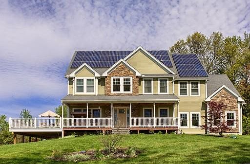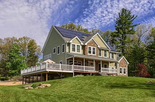 The Sky is the Limit for this custom-built 4-bedroom ten year young Colonial offering stunning panoramic views. Situated on almost 9 acres of land, this home boasts over 3200 sq-ft of above-grade living space, with hardwood flooring throughout, finished walk-out basement, inviting farmer's porch and 3-car garage. High-efficiency Geothermal heating and cooling system paired with PPA solar panels makes for significant cost saving on utilities! The first level features a gourmet kitchen with stainless steel appliances, dark wood cabinets, granite countertops and breakfast bar. The kitchen opens up into the family room, with lofty two-story ceiling, floor-to-ceiling stone fireplace, and French doors which lead onto an expansive 45x15 deck, perfect for entertaining. On the second level, the Master bedroom features large bay windows, a Master bath suite with double vanity sinks, stone tile shower and jacuzzi tub. A must see property!!!