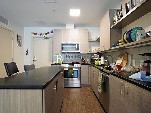AVAILABLE SEPTEMBER- Beautiful 1 bedroom apartment located on a quiet, well-managed building on Langley Road. RENOVATED. Vinyl flooring throughout the apartment. Big open concept tiled kitchen with STAINLESS STEEL APPLIANCES including DISHWASHER and MICROWAVE, BIG kitchen island, nice dining area right in front of the the kitchen. Nice HUGE tiled bathrooms. IN-UNIT WASHER and DRYER. Plenty of storage space. GYM. HUGE PATIO. Parking available for rent. Cats allowed. 1 month fee. Just a short distance to the D Line at Newton Center and to Route 128. To view this apartment or for any questions, please send inquires about this apartment to David.