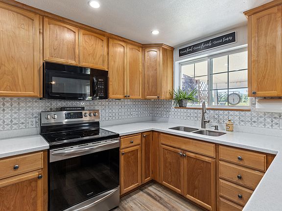 Nestled on 5 acres , this stunning horse property combines breathtaking views of Mt McLoughlin and rural charm. A fresh coat of paint has just dried on all of the buildings as well as upgrades to siding, deck bracing, facia boards, updated electrical and more (see attached improvements/repairs, well flow, BAN and top 35, all done recently).New roofs on the house and woodshed in 2023, new roofs on barn and garage approx. 6 yrs ago. recently stained deck, RV parking with 2 waste dumps, 2 car garage with attached shop and half bath. 1008 sq ft barn with indoor/ outdoor chicken coop, a finished horse stall with room for one more, a coral as well as a fully fenced, mostly electric lot. Covered parking and an inviting truly turn key home with an added family room and pool table, quartz counters, a marble backsplash, and a cozy fireplace make this home a must see!!