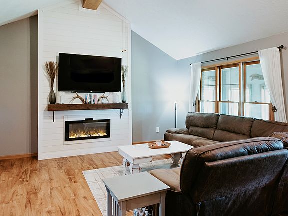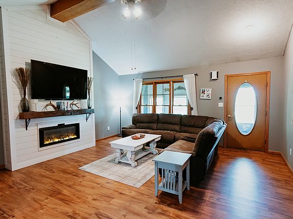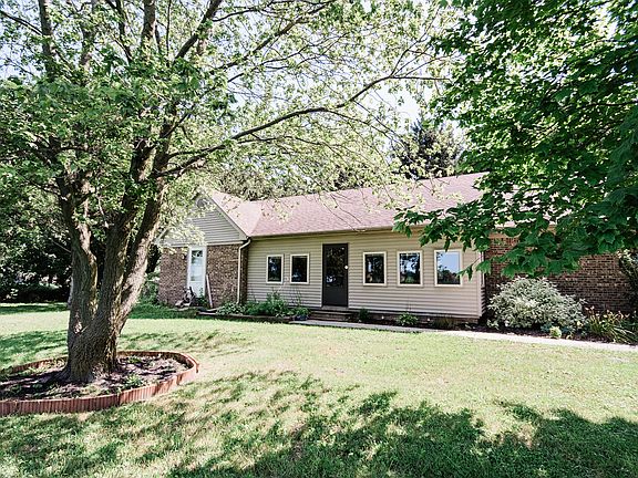 Welcome to your private brick ranch oasis tucked back off the road in downtown Thorntown! Once inside you will be wowed by the vaulted ceilings, wrapped beam, custom mantle fireplace, and rich plank flooring throughout. Your two bathrooms have been recently updated with solid surface and granite vanity tops. The spacious bedrooms are all centrally located with the primary ensuite boasting a walk in closet and attached en-suite bath. This large lot includes an enclosed front porch, a covered back porch, a fully fenced in backyard and a mini barn for storage! You get all the amenities of rural living, cornfields surrounding, a long drive and a private yard, with the walkability to the Big 4 Trail, park, elementary school, library, restaurants and everything downtown Thorntown has to offer! Come see it today!